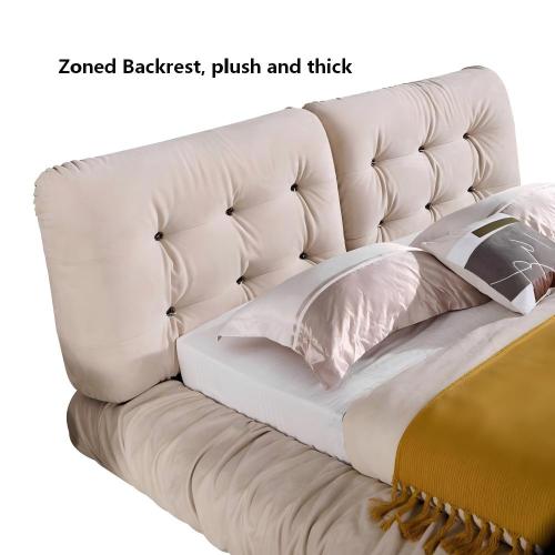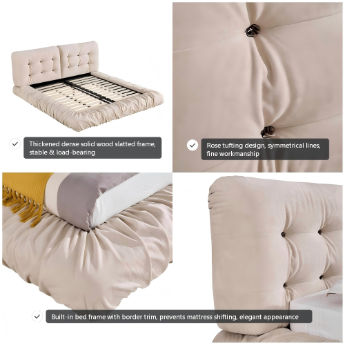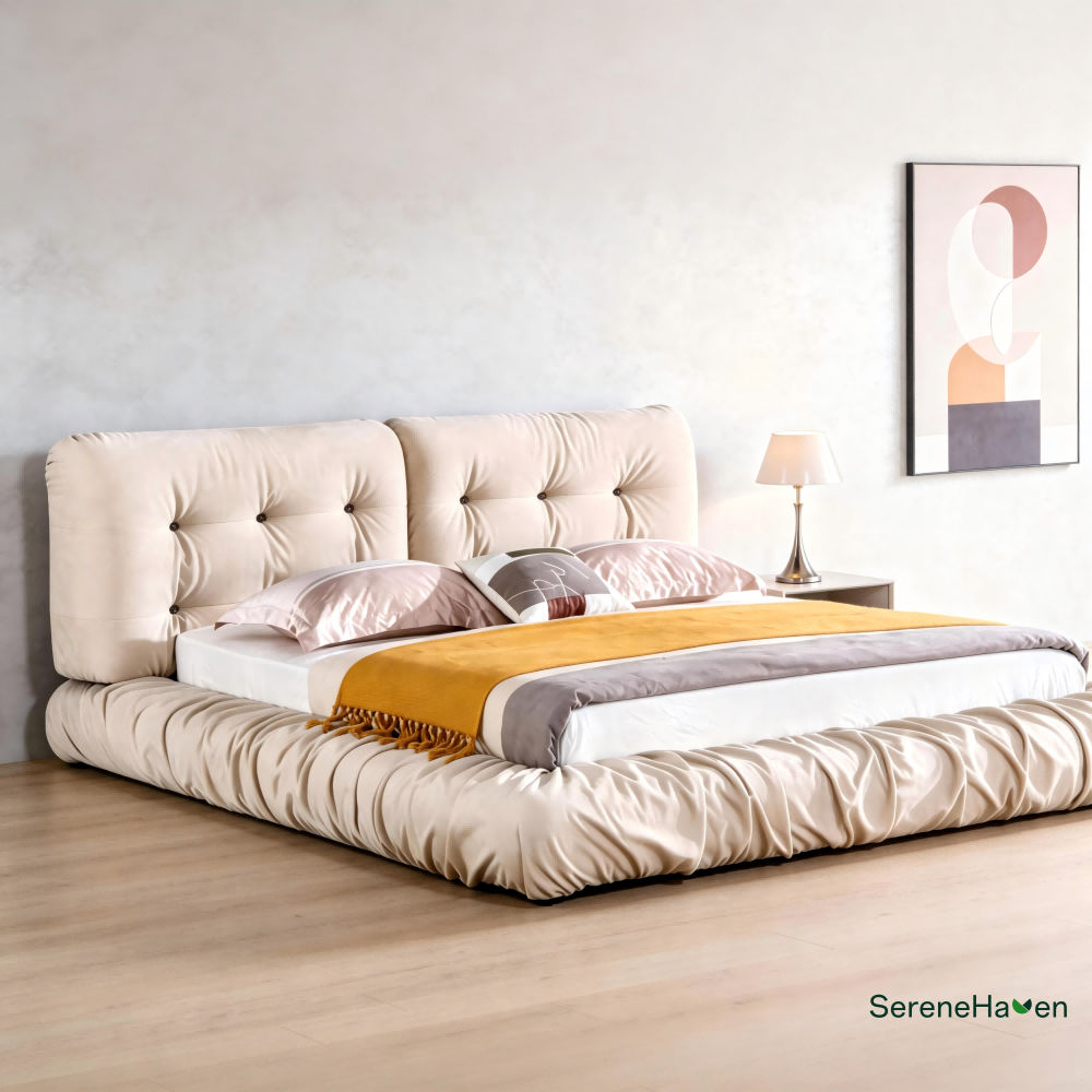 リビングルーム用の象徴的なSereneHavenレザーソファや家族用の汚れに強いソファに完璧にマッチするこのふわふわのクラウドスタイルの布張りベッドは、ご自宅全体にまとまりのある贅沢をもたらします。人間工学に基づいたサポートと雲のような柔らかな快適さを融合させたこの製品は、本革と高級生地のオプションがあり、頑丈な無垢材のフレームベッドを中心に構築されており、長期使用に耐える耐久性を備えています。柔らかさのためにサポートを犠牲にする現代の寝室モデル用の一般的な布張りのベッドとは異なり、豪華な包み込みと構造的安定性のバランスをとり、現代の寝室のレイアウトにシームレスにフィットします。寝室用の高級レザーベッドアクセサリー、リビングルームの装飾用のエレガントなアームチェア、それにマッチするリビングルームの家具と組み合わせて、住宅スペースと商業スペースの両方で目立つ、統一されたハイエンドの家の装飾スタイルを作成します。