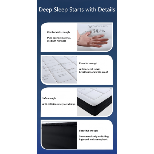 - ベースレイヤー: 19cm 高密度ゾーンサポートスポンジ - たるみがなく、毎日安定したサポートを提供します。