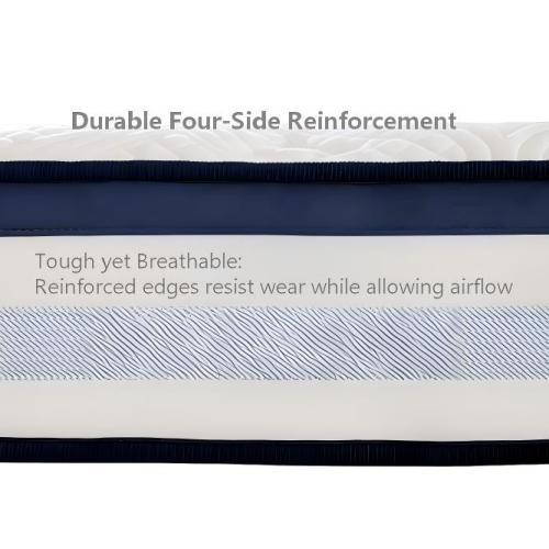 - 高頻度の使用に耐える耐久性のある詳細: 難燃性の底部生地により、耐摩耗性と通気性が向上し、これは素晴らしいボーナスです。また、金型で作られた丸い角と四辺の補強により、厄介なエッジの崩れの問題が解決され、エッジサポートが 25% 向上します。これは、マットレスの端に座ることが多いホテルや長期レンタルに最適です。