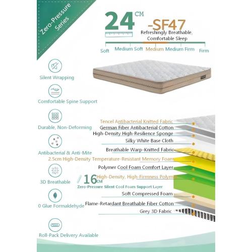 整形外科用の脊椎サポートと長期にわたる低刺激性の快適性のバランスをとったマットレスを見つけるのは簡単ではありません。 SereneHaven SF-47腰痛用の快適なマットレス(横向きで寝る人のための基本的なフォームマットレスをはるかに超えています) は際立っています。プレミアムなドイツ繊維抗菌コットンとシルキーなテンセルニット生地で作られたこのマットレスは、敏感肌向けの最高の抗アレルギーマットレス、ペット家族向けの防ダニマットレスであり、健康を重視するバイヤーや量販店に最適です。その中心となるのは、2.5cm のスペースメモリーフォーム層で、ランバーサポートと背骨のアライメントを含むゼロ圧力の快適性 (腰痛緩和のための脊椎サポートマットレスのすべての利点) を実現し、さらに高分子コールドフォームと 3D 通気性防塵ベースが全身サポートと一晩中冷却します。テンセルは湿気を逃がし、キルティングのダイヤモンドパターンは美しさと実用性を融合し、圧縮ロールパックのデザインは世界中に発送できるため、大量の B2B バイヤーの国境を越えた物流コストを削減します。首の痛みには整形外科用低反発枕(または脊椎の調整には頸椎枕)、または頑丈なマットレスのサポートとして無垢材のフレームと組み合わせて、完全な睡眠セットアップを実現します。