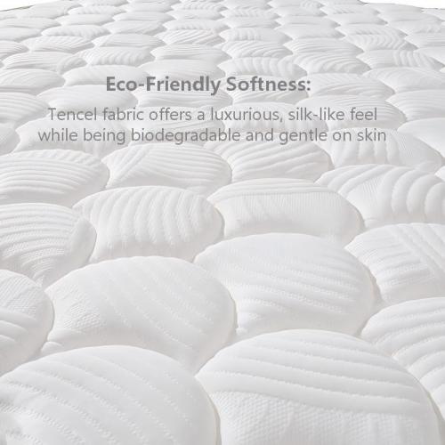 - 表面生地:テンセルニット (シルキー、低刺激性、通気性、吸湿発散性) + ドイツファイバー抗菌綿 (長期使用のための抗菌マットレス、防ダニ、消臭、表面コーティングの摩耗なし)